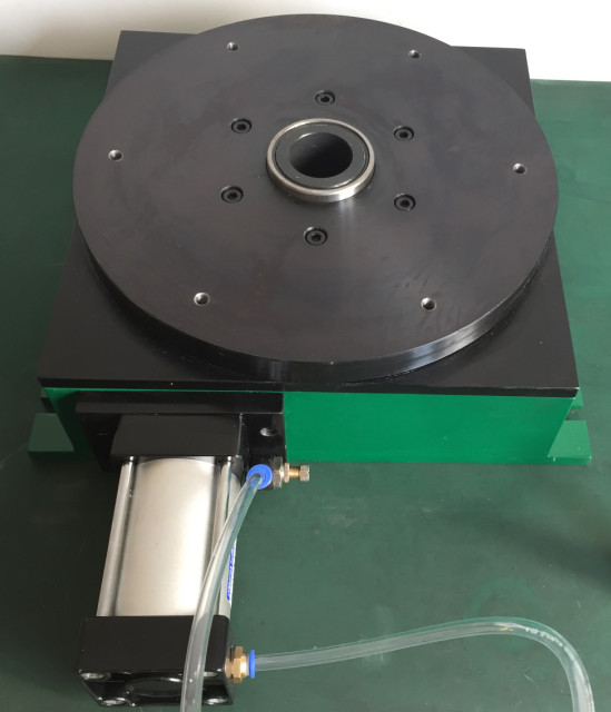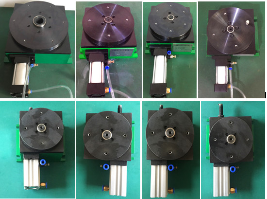 1.气动分度盘其系列型号有:110型,140型,180型,250型,320型,400型,600型等。安装控制简单,利用空压或液压作动力,配合(电磁阀.单片机.PLC)及控制回路。
